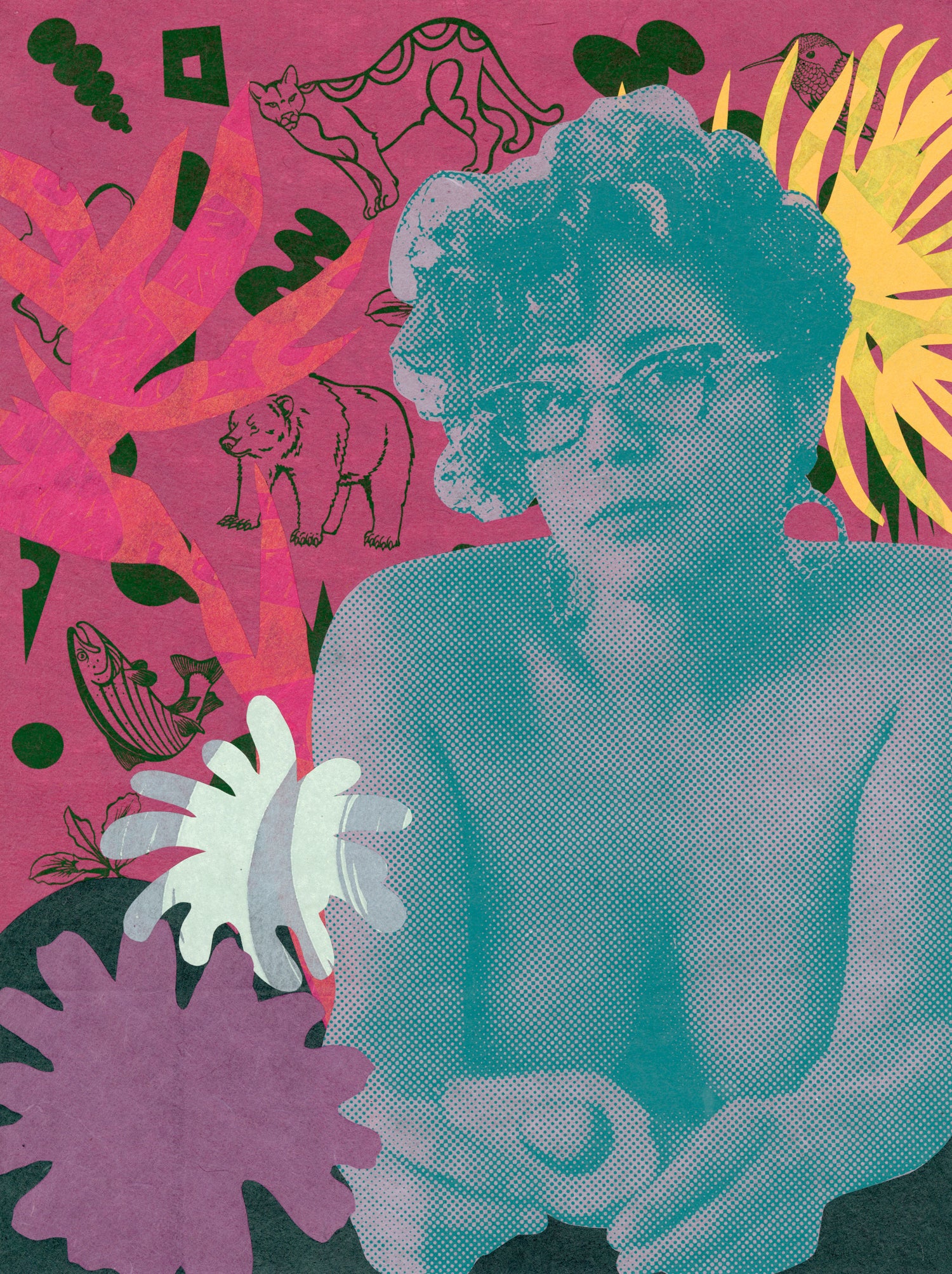 APHRODITE is a new series of collages about pleasure and about my human body, which comes from this planet and is formed thanks to the thousands of organisms that lived before I was born. The human body is often forced into a small binary box, but the human body is an expansive, wonderful, and mysterious container. I am fascinated by my body and all it can do. It took me two decades to learn how to care for my body instead of exploiting it.