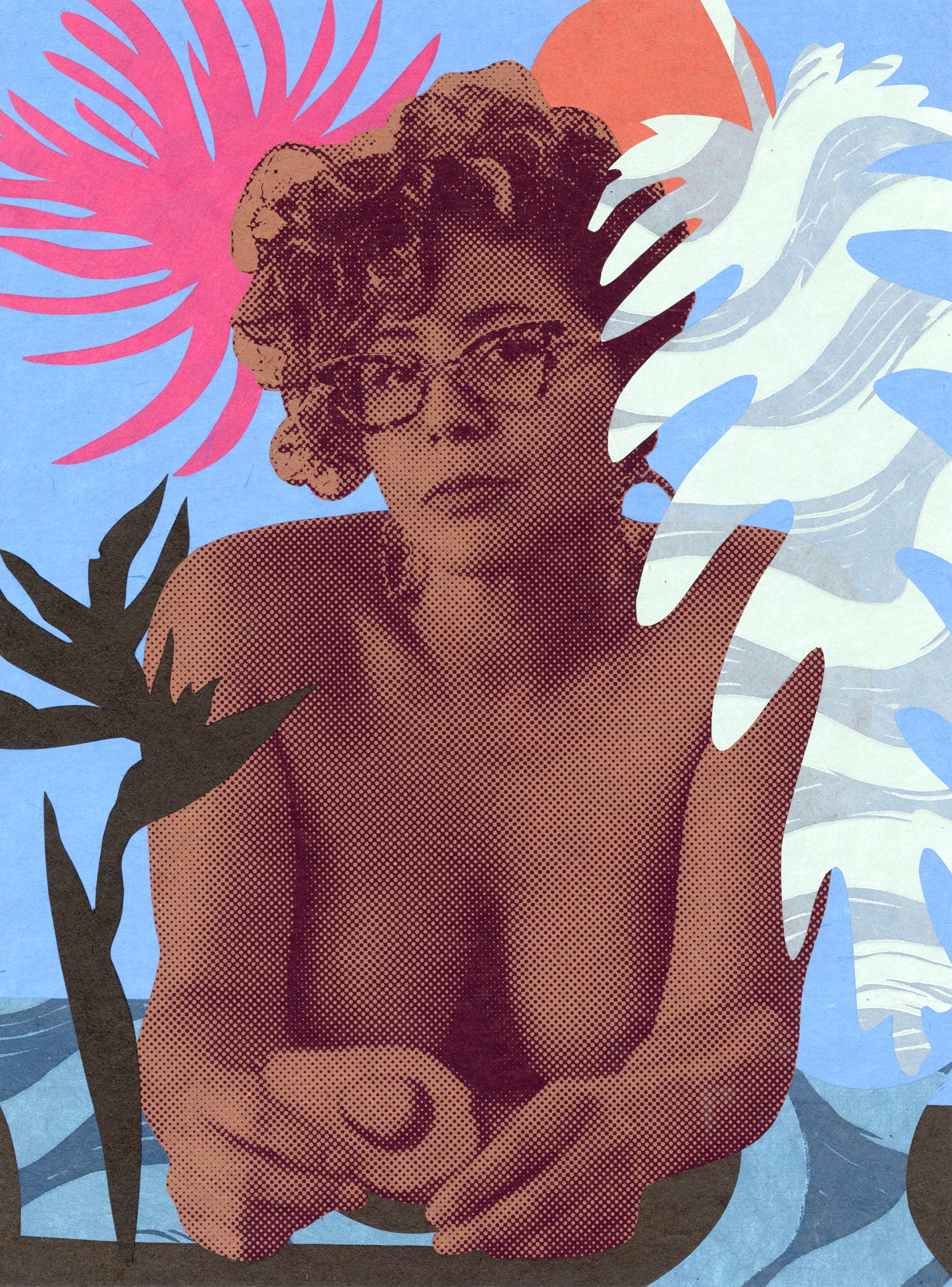 APHRODITE is a new series of collages about pleasure and about my human body, which comes from this planet and is formed thanks to the thousands of organisms that lived before I was born. The human body is often forced into a small binary box, but the human body is an expansive, wonderful, and mysterious container. I am fascinated by my body and all it can do. It took me two decades to learn how to care for my body instead of exploiting it.
