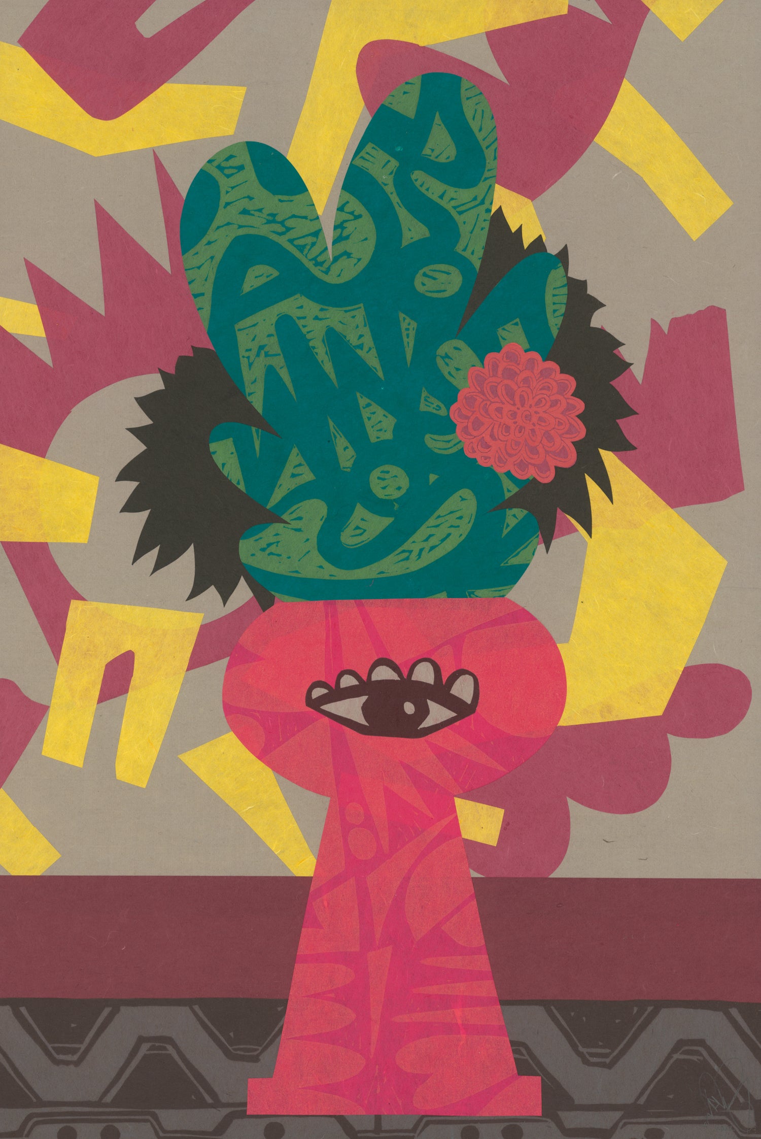 2022, Collage with Linoleum Block Elements on Cotton Rag Paper