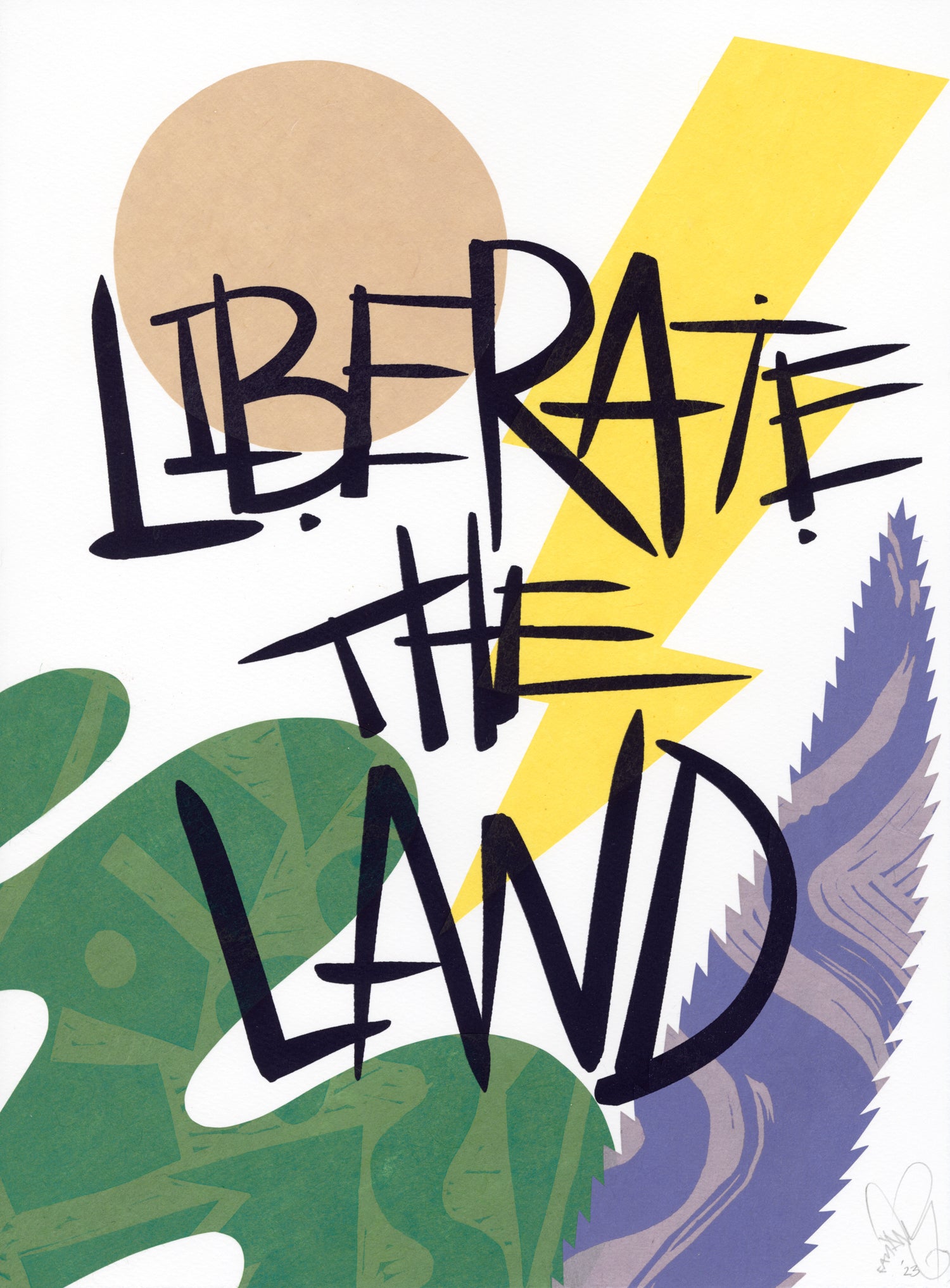 The land does not belong to us, we belong to the land. This print honors the movement to FREE THE LAND!