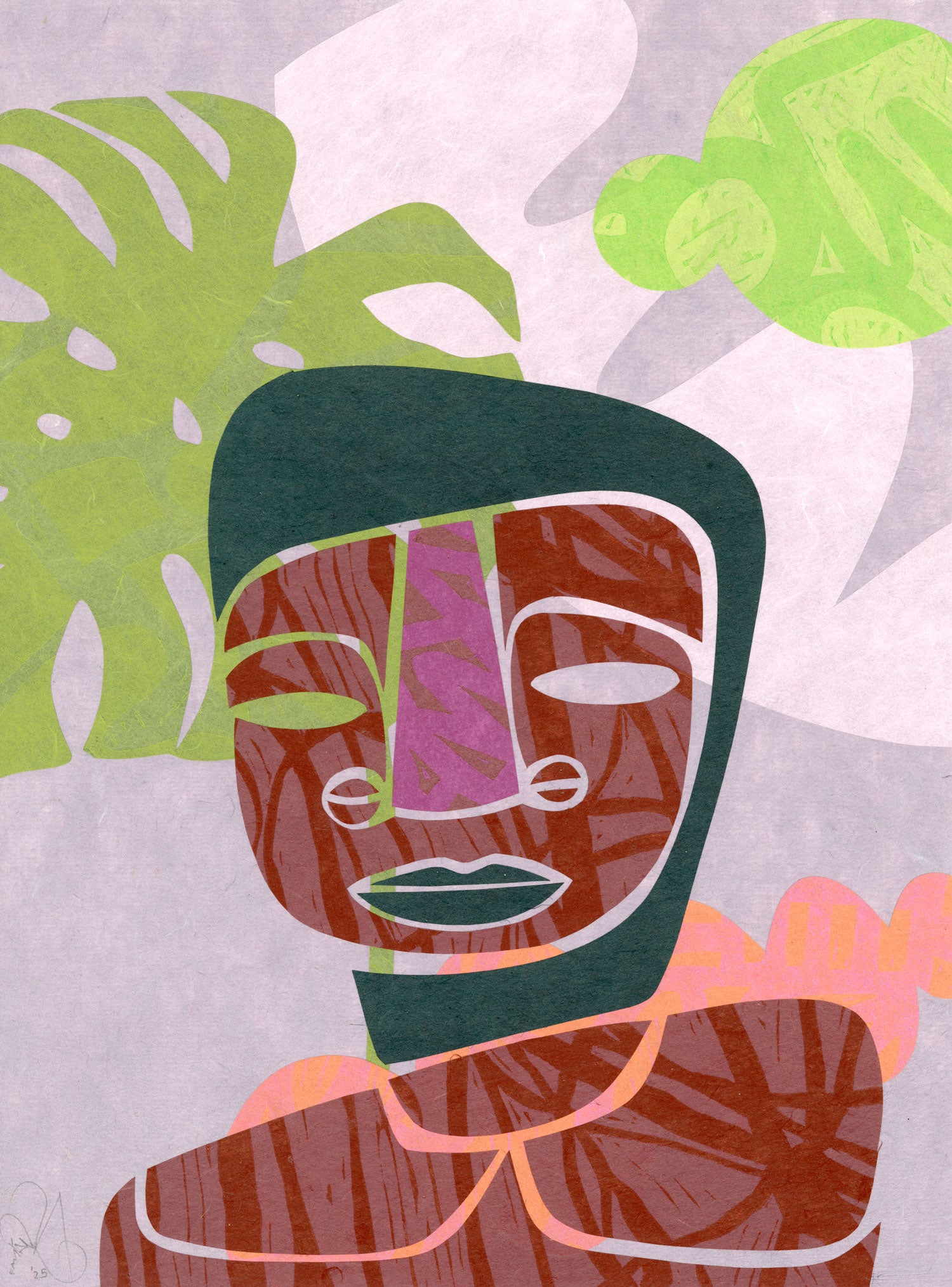 2025, Collage with Lino Block Elements on Cotton Rag Paper.