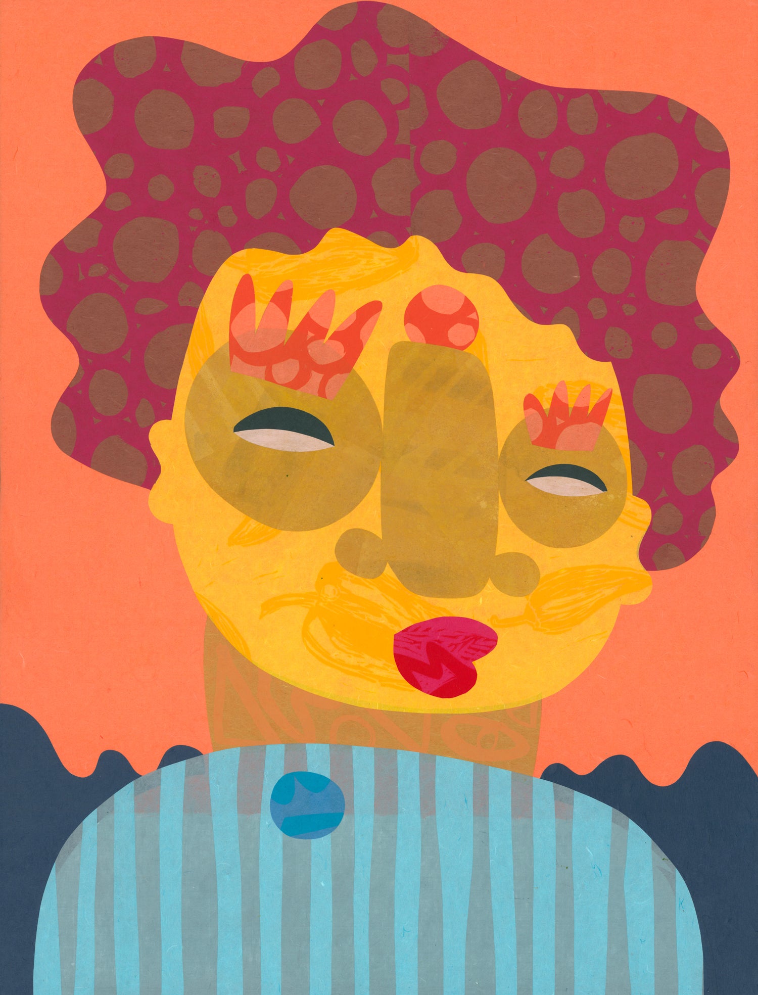 Sunshine on my Face is my first series of studies to explore how I might carry my characters over to the digital NFT space. My goal was to make modifications in each of the characters and change the colors of the nose, the patterns of the skin tones, the patterns of the shirts and the colors of the hair, to see how the figures were different from each other. In this first series, I'm pushing color combinations and being playful with textures while incorporating some of my patterning, which I do with leftover shapes that remained from my food collages.