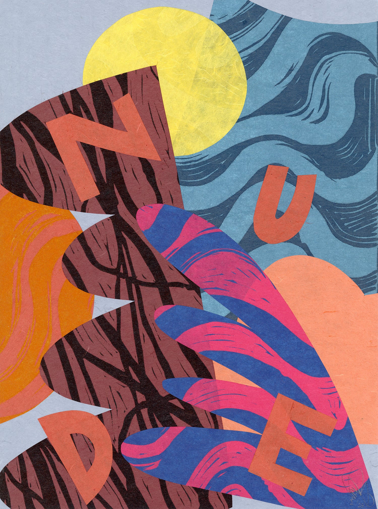 2023, Collage with Linoleum and Screenprint Elements on Cotton Rag Paper