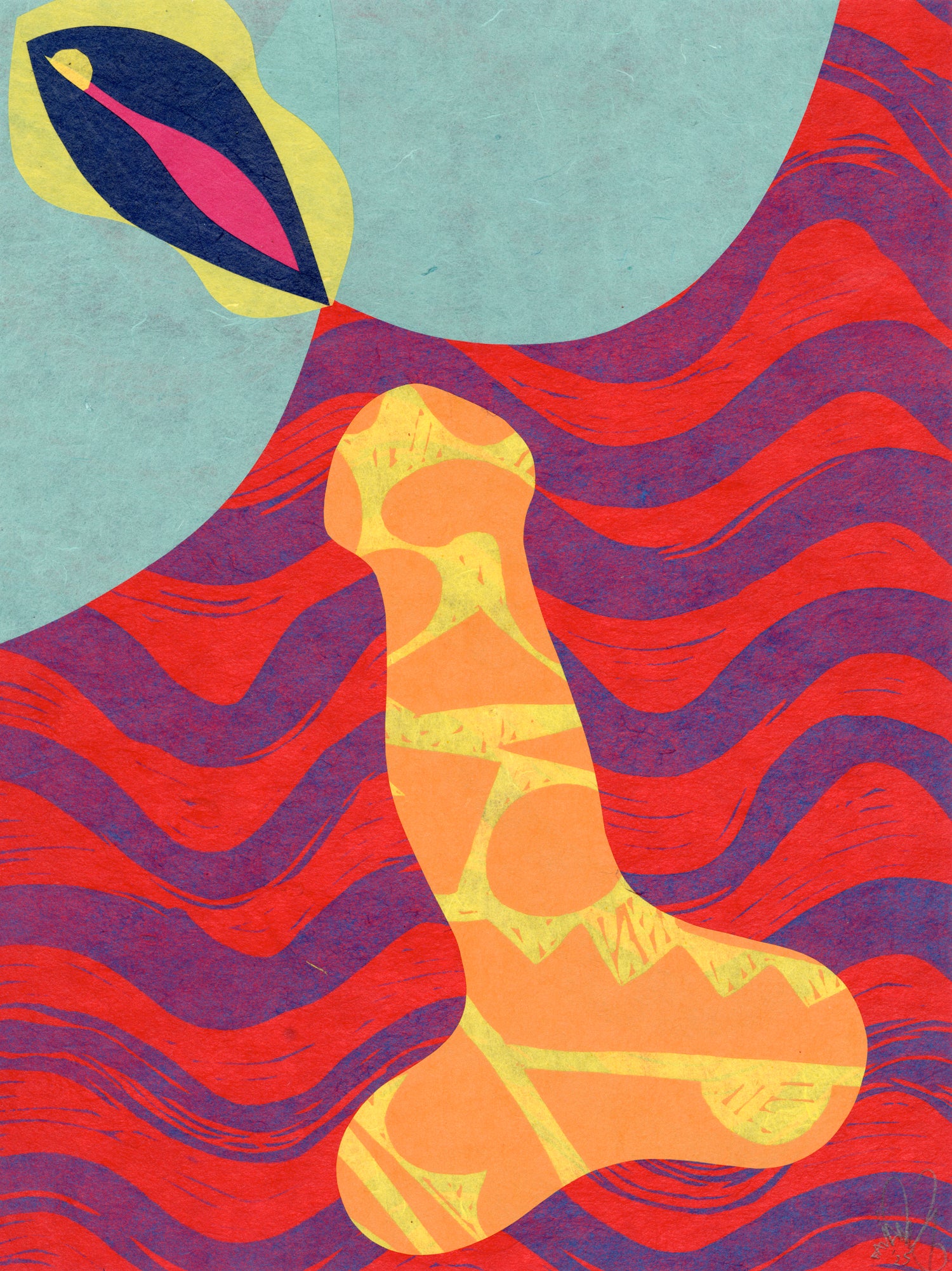 Offering explores eroticism and sensual play as sites of joy and resistance. Through humor, color, and abstracted forms inspired by nature, these collages normalize sexual pleasure and reclaim the erotic as a vital part of embodiment. In a world where rising fascism seeks to control gender, bodies, and desire, pleasure becomes a source of renewal and liberation.