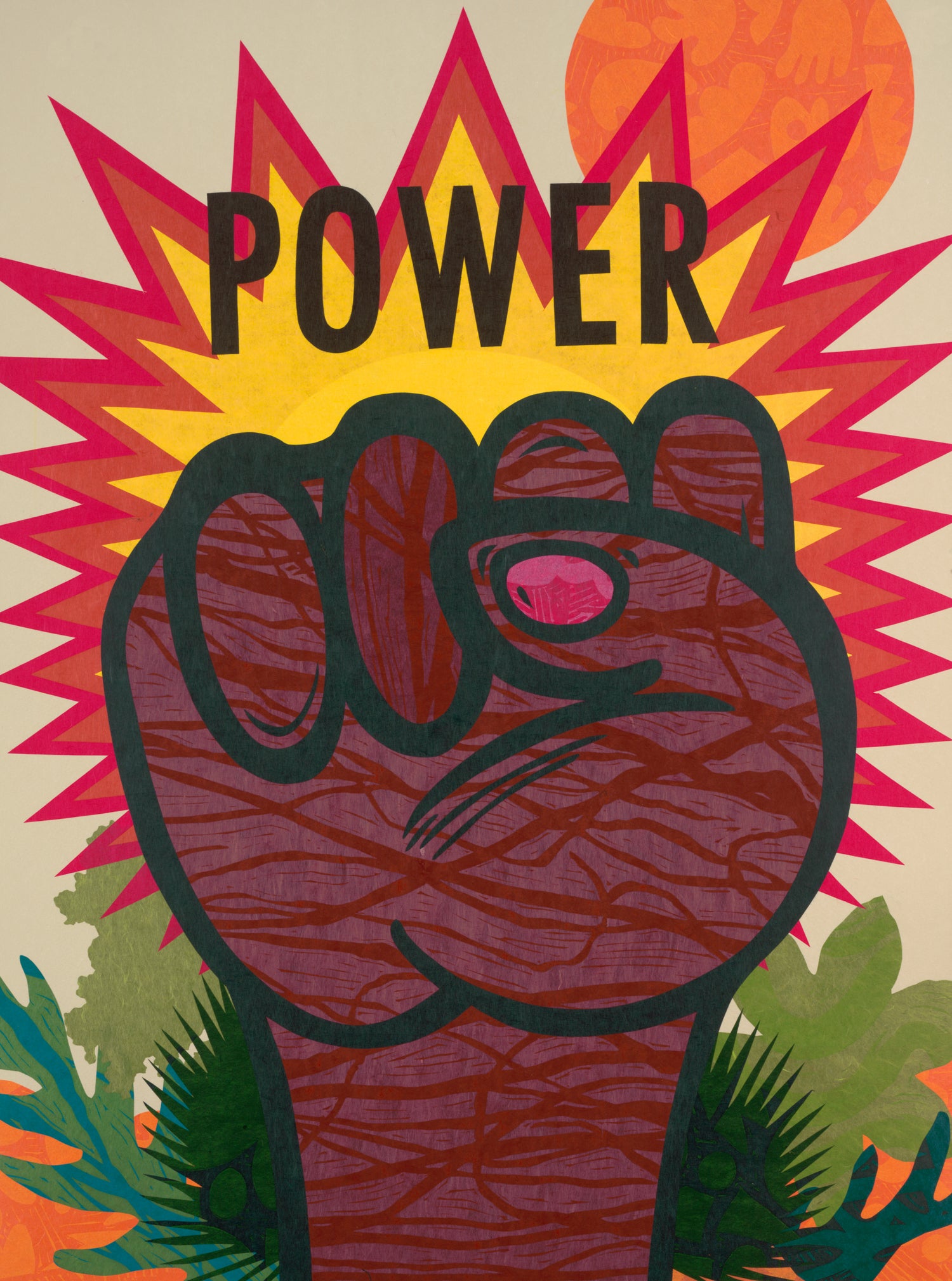 In 2024, I embarked on a journey to revisit my iconic Power Fists and develop a new series of prints paying homage to a symbol that has served as a central motif in my artwork for the past 25 years. Throughout my artistic career, I've been fascinated by the potency of symbols, particularly those deeply entrenched in our cultural consciousness. I love to play with symbols from our social movements as well as symbols from nature.