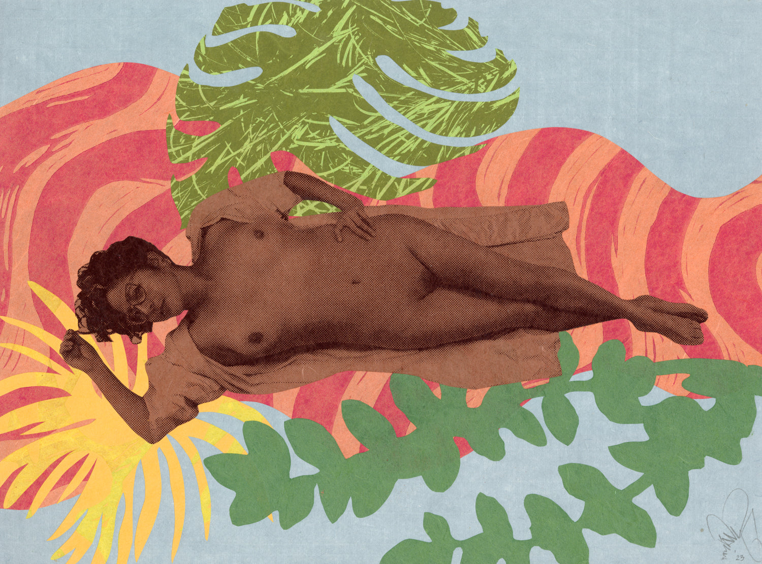 This work is a new series of collages about PLEASURE and about my body. The human body is often forced into a small binary box, but the human body is an expansive, wonderful, and mysterious container. I am fascinated by my body and all it can do. It took me two decades to learn how to fully enjoy my body instead of shaming or exploiting it.