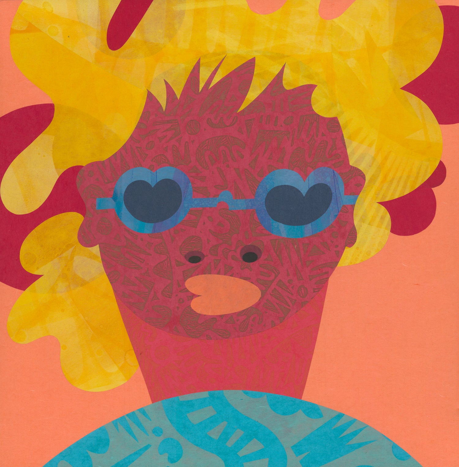 This work is part of a series of wood panels in which I was experimenting with various textures to create bold portraits. Each portrait is composed of patterns and icons that were printed on large sheets of colored paper. Through linoleum block printing,I experimented with how my shapes could be reorganized into patterns. Each character is an imaginary person in my imagination, represented by various elements from my culture, including the chile, the fists and the maiz (corn) textures. My goal with these pieces was to see how far I could push the various textures and patterns in my work to create characters that have depth.