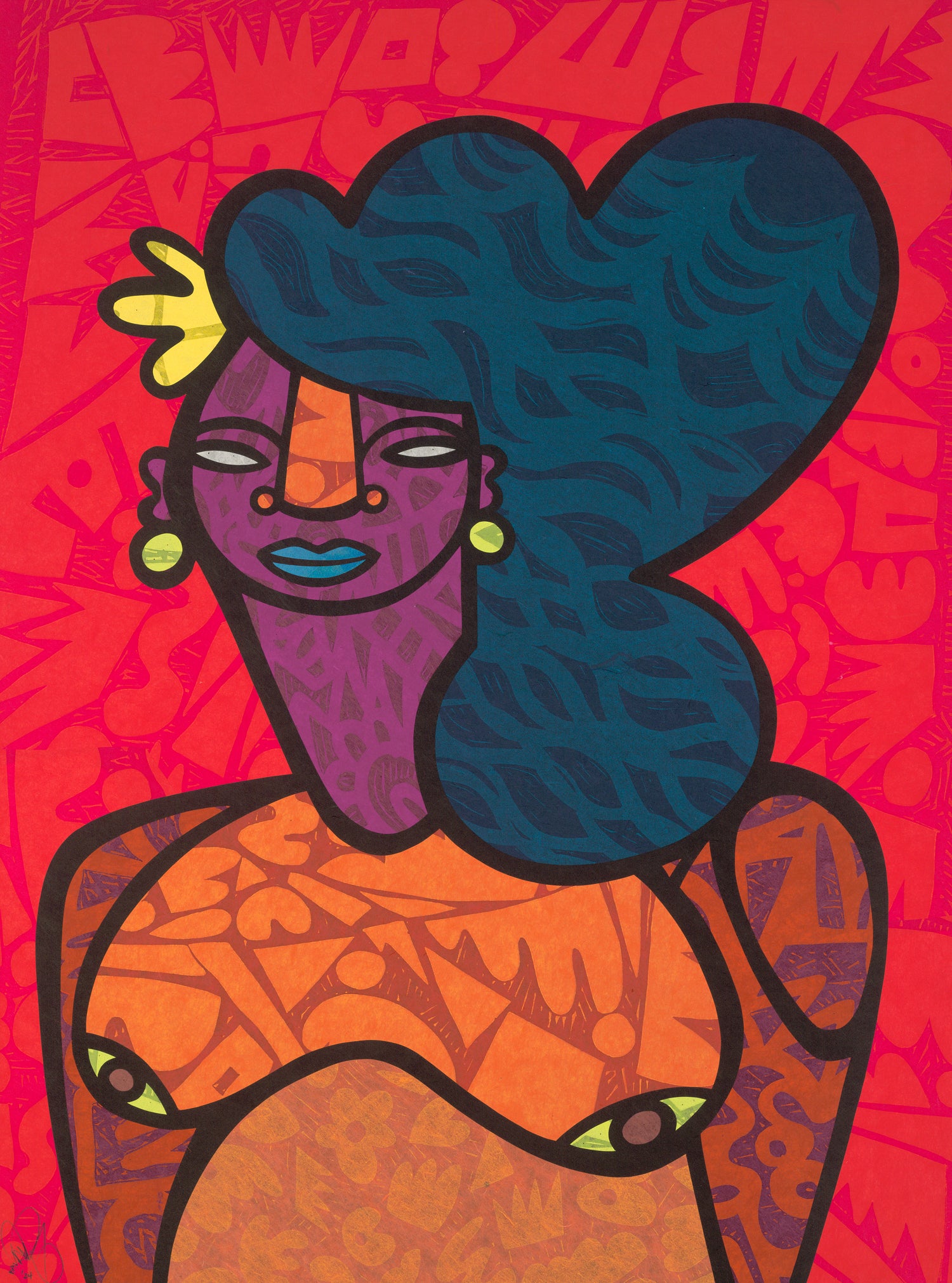 This art work celebrates body freedom and pride. It honors the joy of being unapologetically comfortable in our own skin, challenging shame and stigma around nakedness, especially when it comes to breasts. The body is a biodiverse ecosystem, a fascinating organism that deserves love and respect. This character exudes confidence, embodying dramatic feminine energy that honors both cis and trans women. The piece is an invitation to reclaim our bodies and embrace who we are, witnessed by our community.