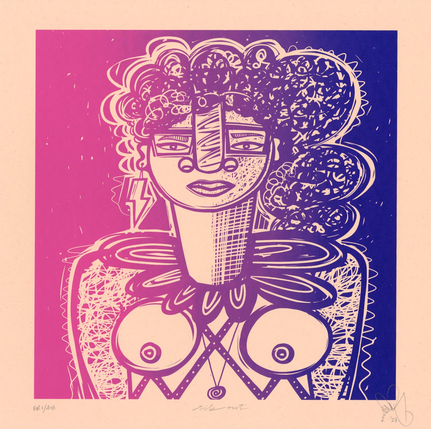 This art piece was inspired by a trip to San Francisco’s Folsom Street Fair in 2022. I loved how many folks were wearing harnesses and leather outfits that are popular in kink and BDSM culture. I felt so lucky to live in an open place like the Bay Area. That day, I got myself a cute harness and wore it with my breasts out, and that moment inspired this work.
