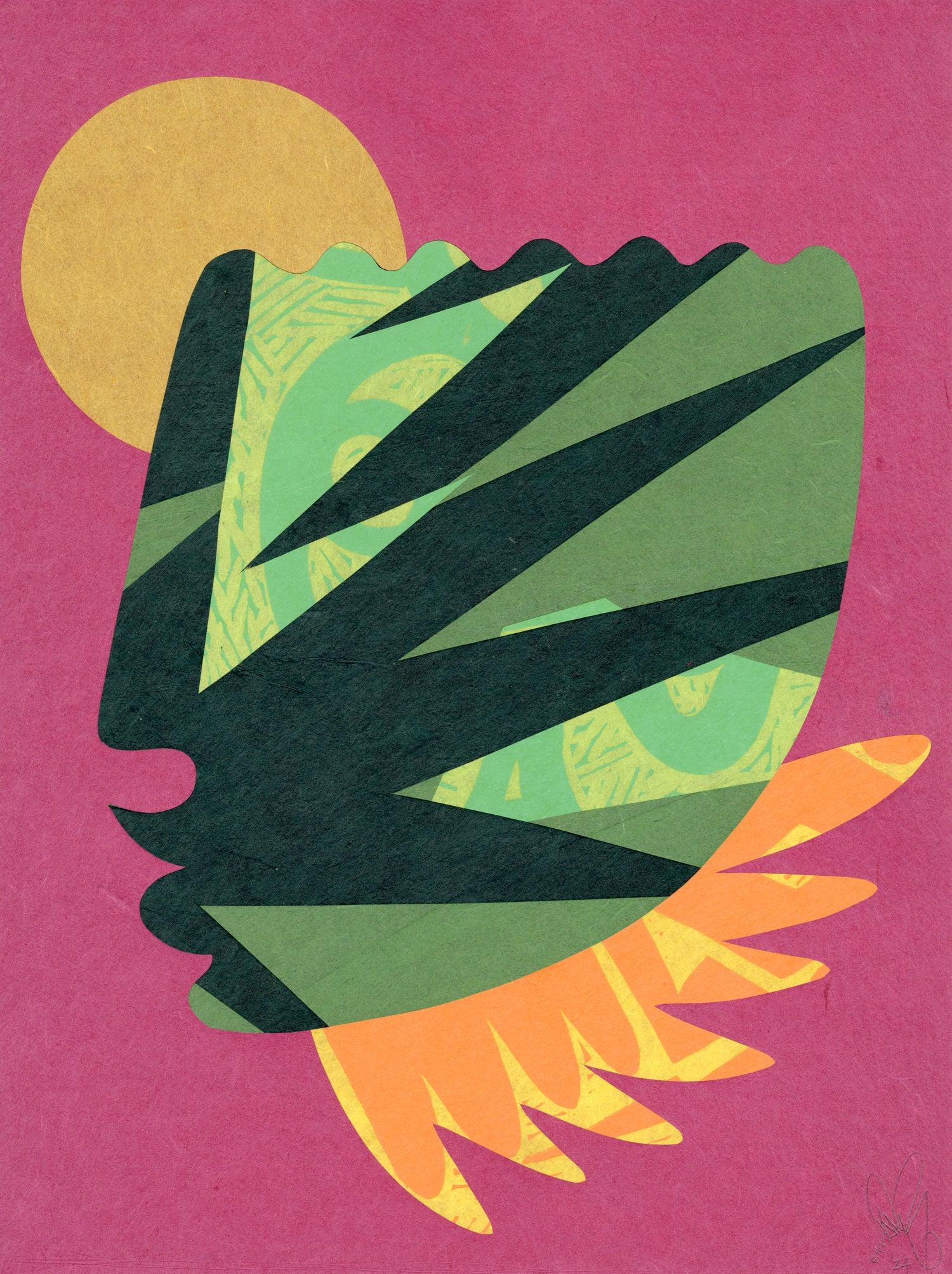 2024, Collage with linoleum block elements on cotton rag paper.
